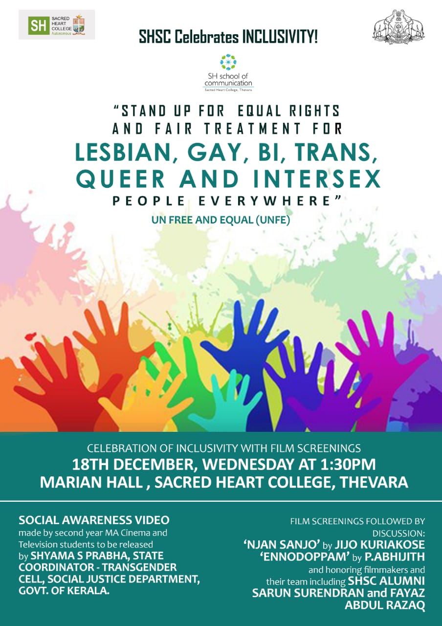 Social awareness video with the hashtag, #equality4all, made by second year MA Cinema and Television students to be released by Shyama S Prabha, State Coordinator - Transgender Cell, Social Justice department, Govt. Of Kerala.